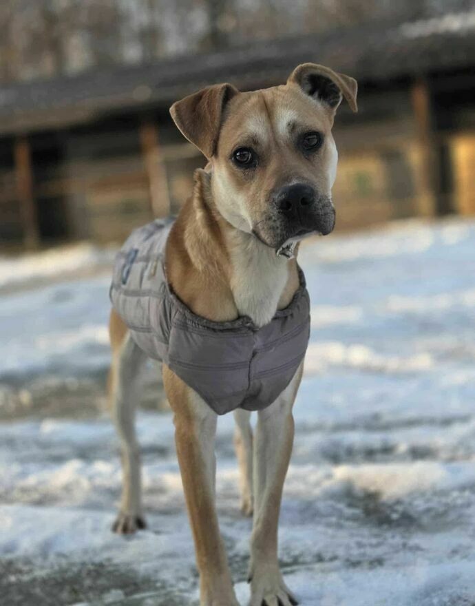 Obecnie przebywa w schronisku ale bardzo marznie ,ponieważ ma krótką sierść .