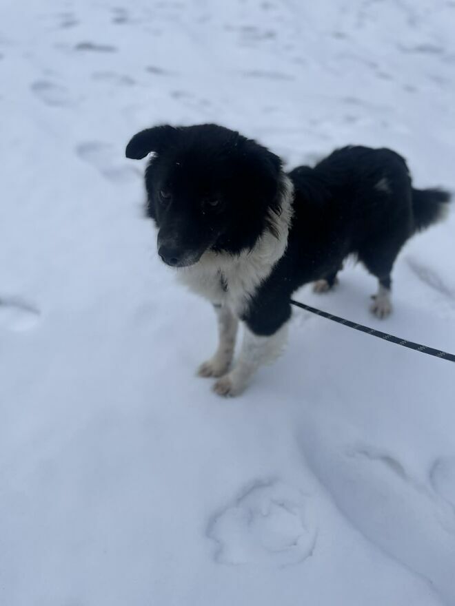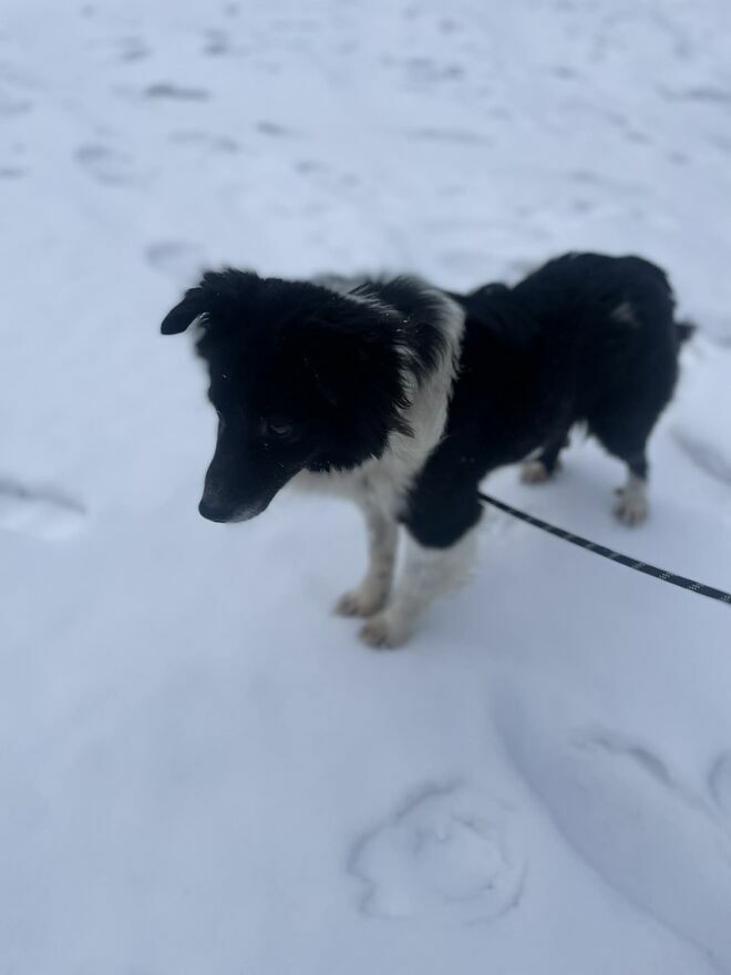 Kordonek to młody piesek Przypomina Border Colieważy 7.5 kg ,poszukiwany dom bez dzieci ,ponieważ nie miał z nimi kontaktu ,jest młody wymaga ułożenia