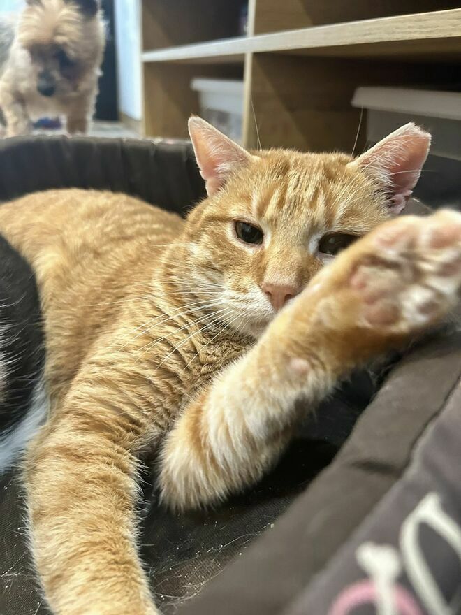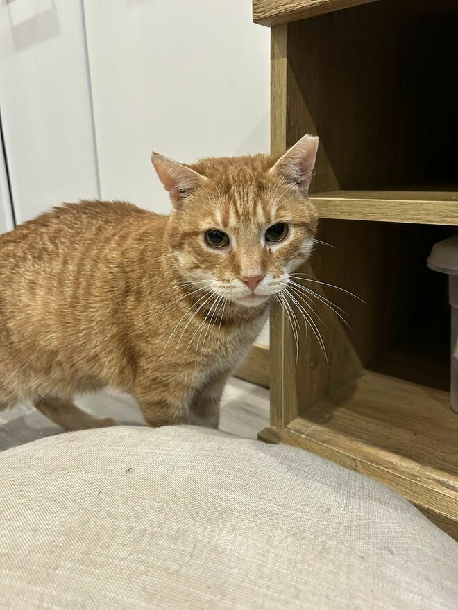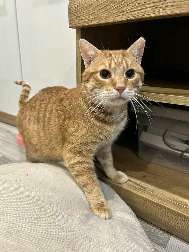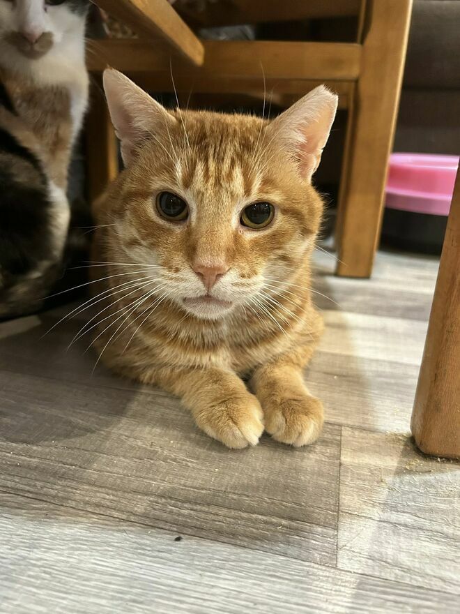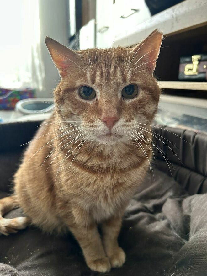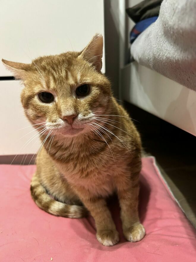 Cheddar ma około 5 lat, jest wykastrowany, odrobaczony, zaszczepiony i zachipowany. Testy na FiV/FeLV ma ujemne (jest zdrowy). Posiada książeczkę zdrowia, wzorowo korzysta z kuwety.