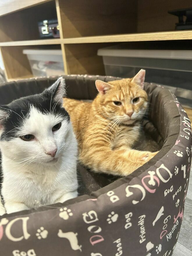 Obcy? Nie, dziękuję. Jak ktoś przychodzi, to ja znikam w mój bezpieczny świat. Nie jem przy ludziach, których nie znam, je się tylko tam, gdzie jest bezpiecznie. Ale z innymi kotami? Jasne. Koty to moja rodzina. Mogę jeść z jednej miski, mogę spać obok, mogę iść za nimi jak cień. Pies też może być, o ile nie jest wariatem, wariaci mnie straszą.