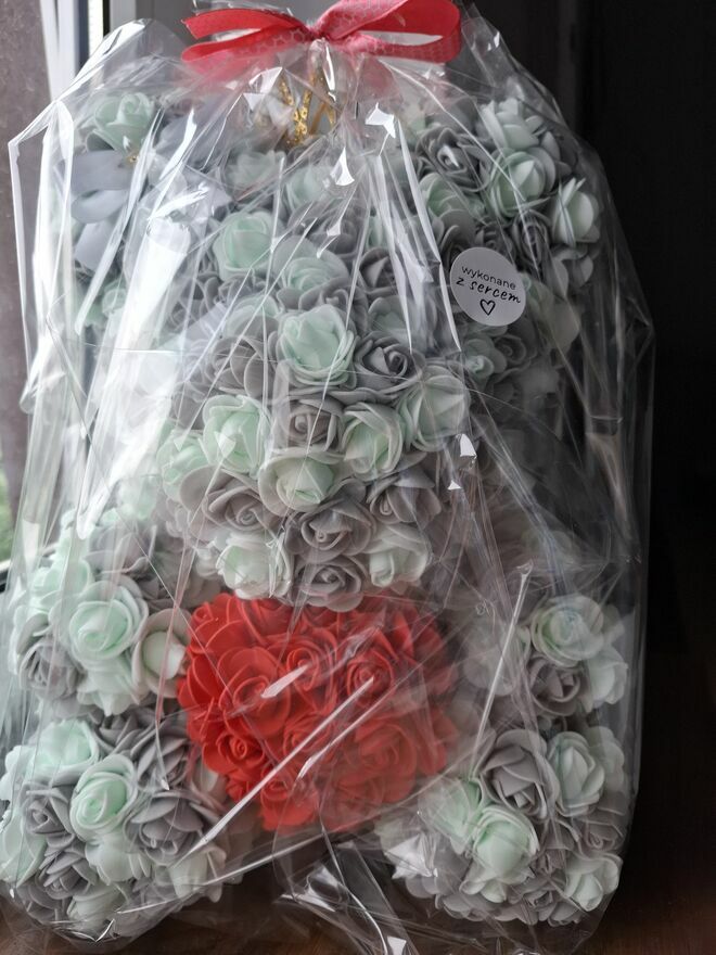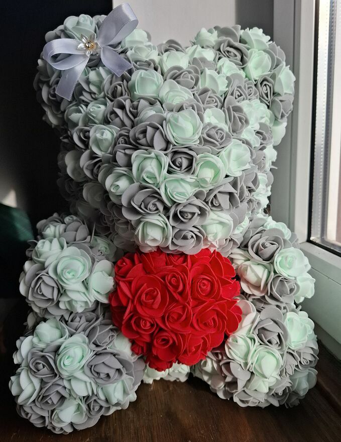 Proponuje Panstwu misia z piankowych róz wys ok 37cm wykonany przexe mnie, nie pochodzi z chinskich portali, rozne wzory, odbiór osobisty mile widzianySprawdź zainteresowanie tym ogłoszeniem
