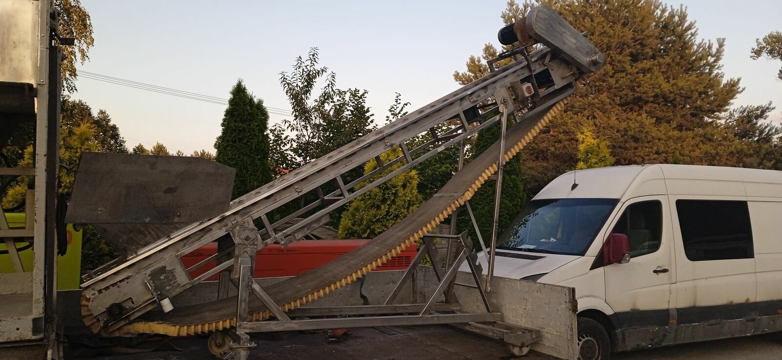 Do sprzedaży podajnik taśmowy kwasoodporny z przeznaczeniem do spożywkiRegulowana wysokość podawania.