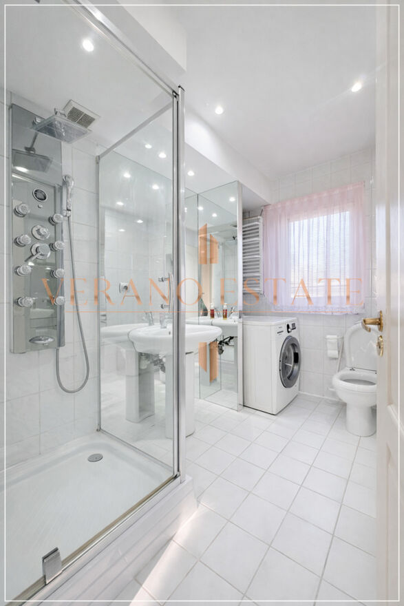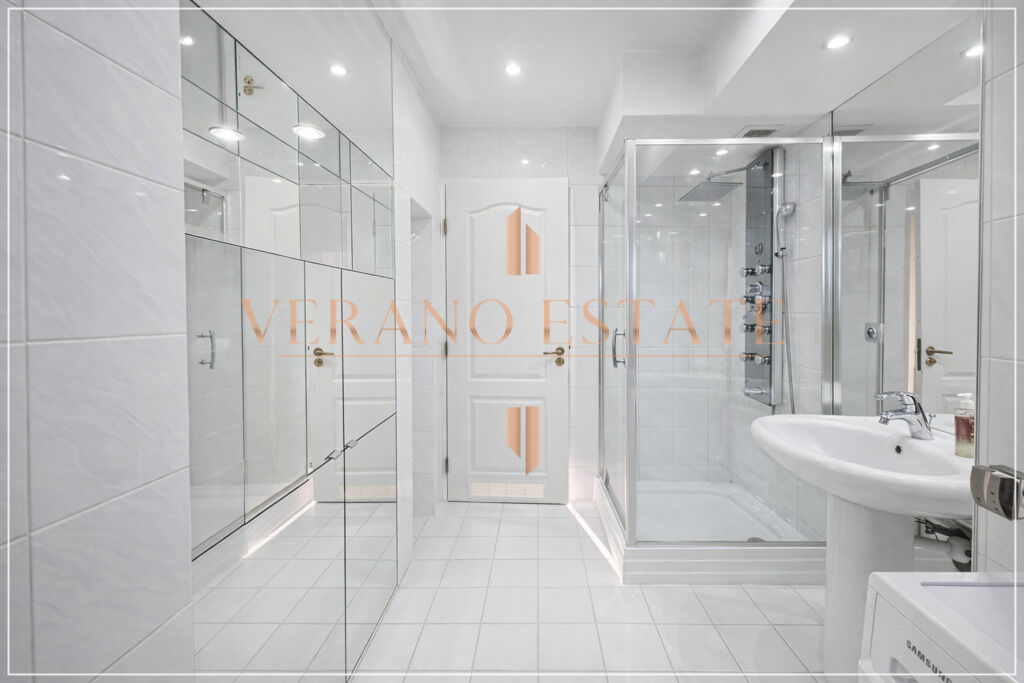 Łazienka – z kabiną prysznicową i efektowną zabudową luster