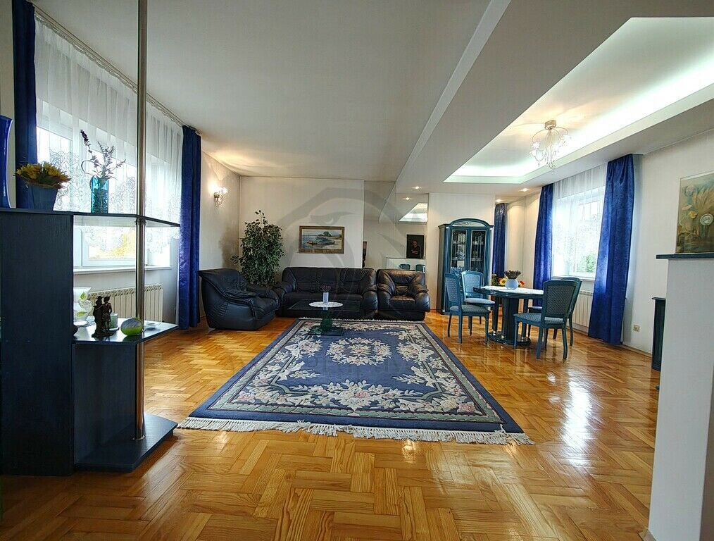 i salon – ogromny, 60 m² z oranżerią, gdzie słońce wpada tak